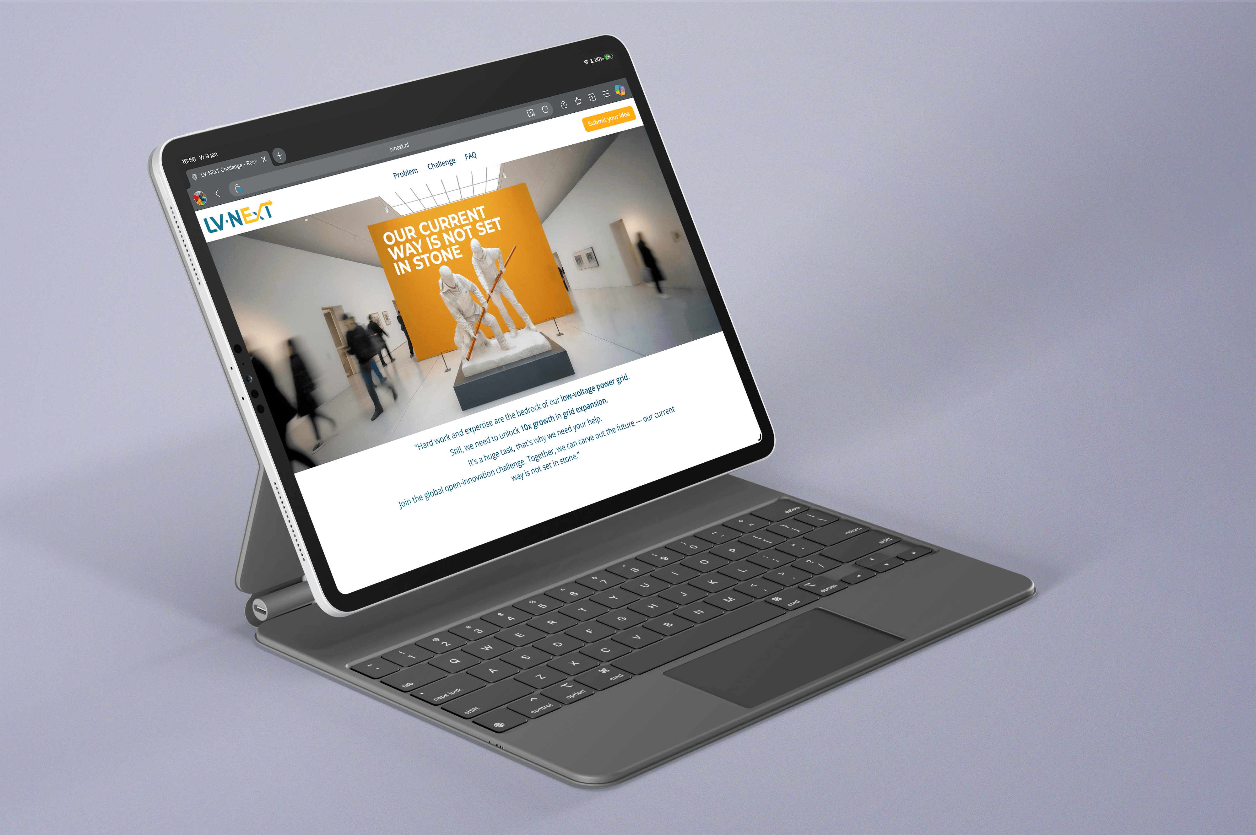 Alliander, Enexis en Stedin (de drie grootste netbeheerders van Nederland) werken binnen het gezamenlijke initiatief LV NEXT samen aan de toekomst van het laagspanningsnet. Voor dit project was behoefte aan een helder en onderscheidend creatief concept dat richting gaf aan communicatie, samenwerking en innovatie. Daarnaast zochten zij middelen om externe partijen actief te betrekken. Ideeën, inzichten en oplossingen vanuit de markt moesten op een toegankelijke en gestructureerde manier verzameld kunnen worden. Dit vroeg om duidelijke formats, consistente documentatie en een online platform waar bedrijven hun ideeën konden indienen. De opdracht kwam voort uit een samenwerking via de Ten Stripes Coöperatie, waarbij de vraag aan ons was: kunnen jullie helpen om LV NEXT visueel, conceptueel en praktisch vorm te geven, zodat het project helder, professioneel en toekomstgericht wordt neergezet?